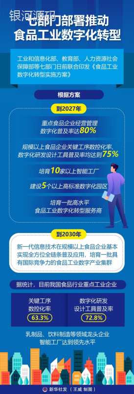 记者6月10日获悉,工业和信息化部、教育部、人力资源社会保障部等七部门日前联合印发方案,加快推动食品工业数字化转型升级。